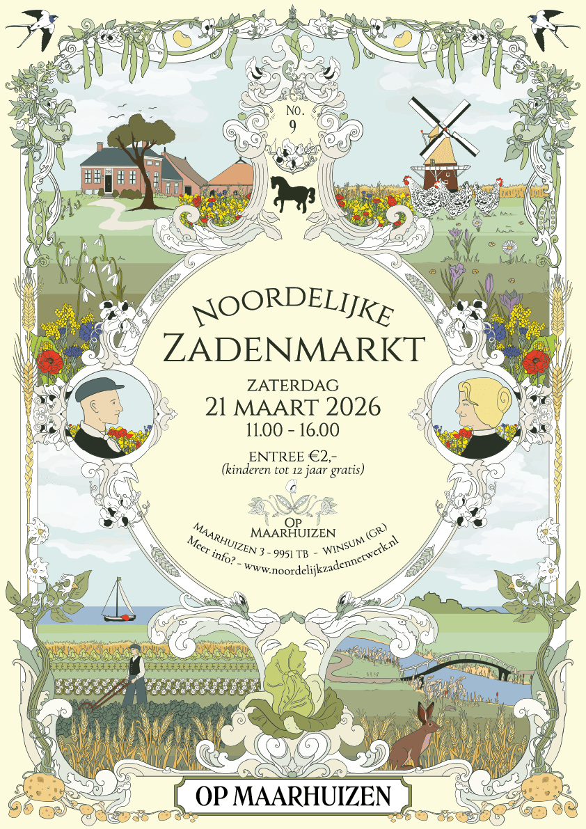 Op zaterdag 21 maart 2026 vindt de negende editie van de Noordelijke Zadenmarkt plaats in en om de historische boerderij Enne Jans Heerd op de Wierde van Maarhuizen in Winsum (Gr.). In de prachtig verbouwde schuren zullen verschillende standhouders weer hun zaden, knollen en bijzondere eetbare planten te koop aanbieden. Ook zal er weer een afwisselend en inspirerend programma zijn van workshops en lezingen.